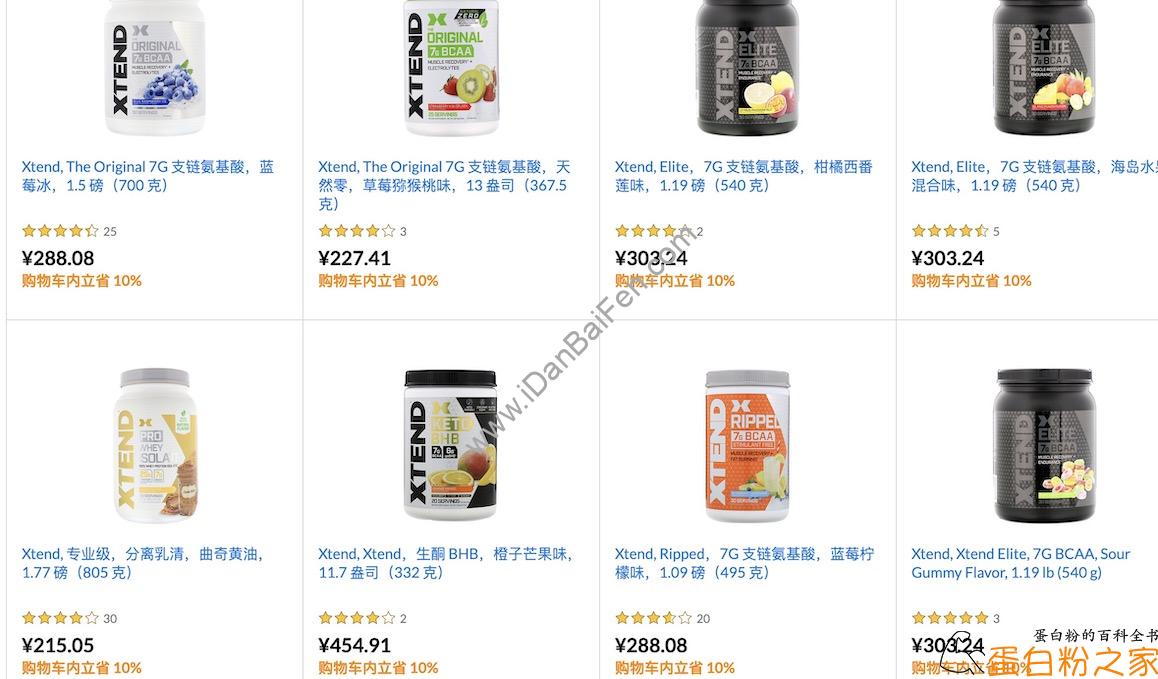 Xtend全场BCAA(支链氨基酸)和乳清蛋白分离物均是10%立减优惠,满279元即可包邮免税发至中国: